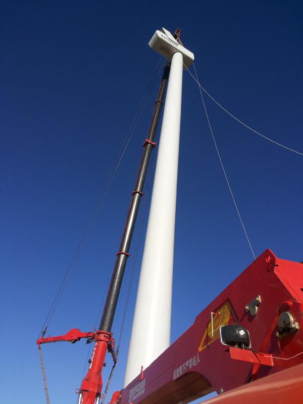 宁夏盐池哈纳斯风机安装工程风电场塔筒吊装